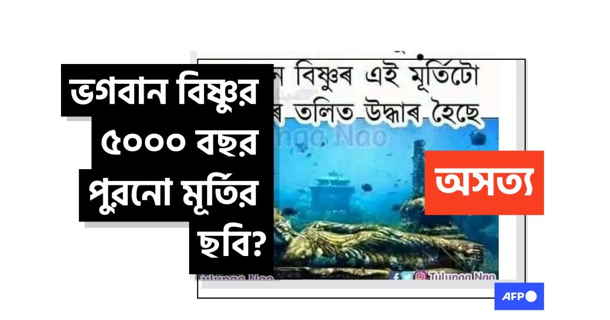 পোস্টে ছবির ওপরে আসামীয় বাংলায় লেখা রয়েছে: "৫০০০ হাজার বছর পুরনো ভগবান বিষ্ণুর এই মূর্তিটা সাগরের তলদেশ থেকে উদ্ধার করা হয়েছে।"