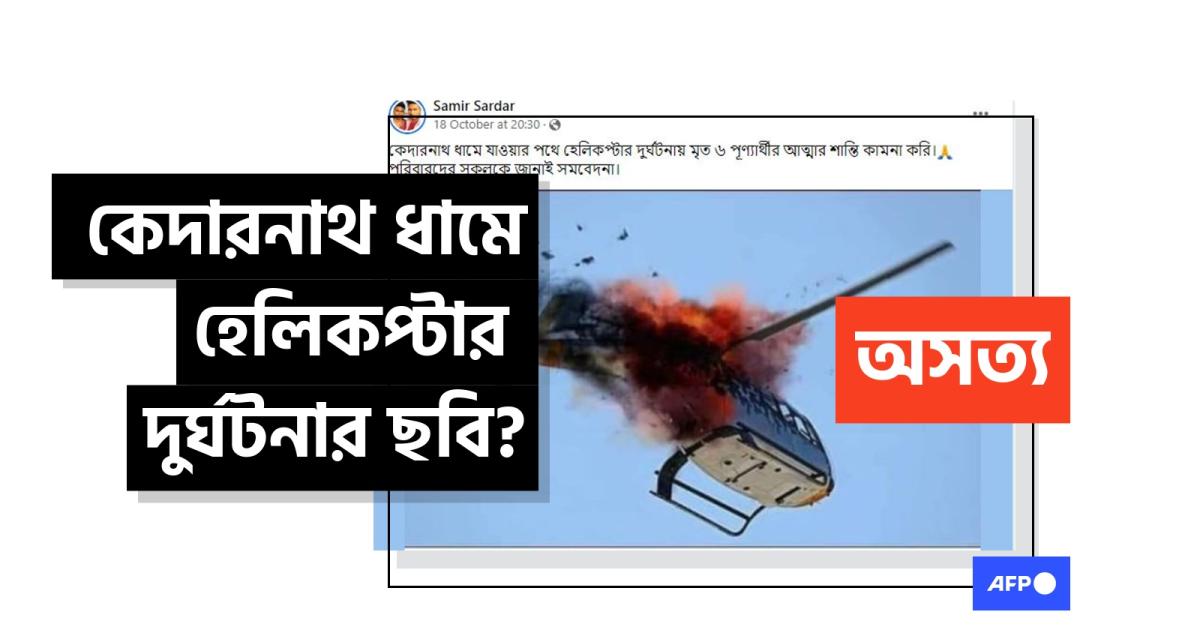 গত ১৮ অক্টোবর ভারতের কেদারনাথের মন্দির থেকে তীর্থযাত্রীদের নিয়ে ফেরার সময় একটি হেলিকপ্টার বিধ্বস্ত হলে ঘটনাস্থলেই সাতজনের সবাই মৃত্যুবরণ করেন।