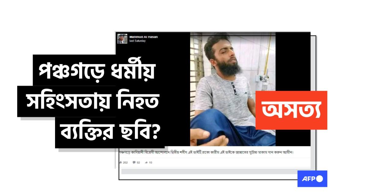 ছবি চোখবন্ধ অবস্থায় দেয়ালে হেলান দিয়ে বসে থাকা এক তরুণের ছবির পাশে লেখা রয়েছে: ""পঞ্চগড়ে কাদিয়ানী বিরোধী আন্দোলনে আরো একজন শহীদ। ইন্নালিল্লাহি ওয়া ইন্নাইলাইহি রাজিউন। রাব্বে কারীম এই ভাইকে জান্নাতে সুউচ্চ মাক্বাম দান করুন। আমীন।"