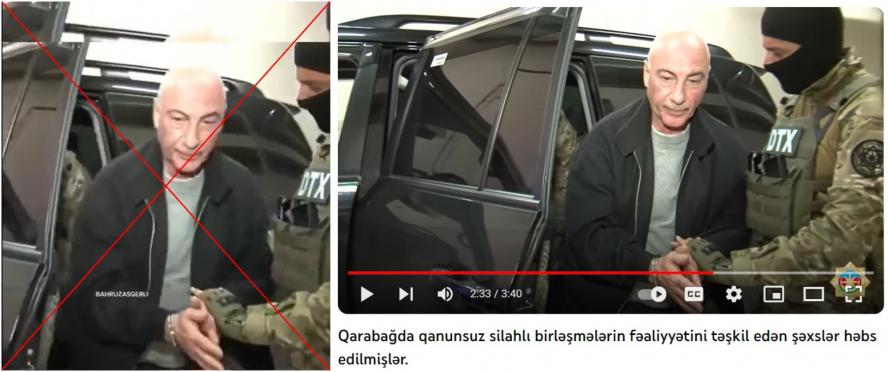নীচে অসত্য দাবিতে ছড়ানো ফেসবুক পোস্টের ফুটেজ (বামে) এবং আজারবাইজান স্টেট সিকিউরিটি সার্ভিসের (ডানদিকে) ইউটিউব ভিডিওর তিনটি তুলনামূলক স্ক্রিনশট দেয়া হলো: