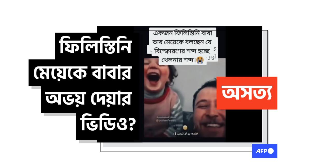 গত ৭ অক্টোবর হামাস মিলিট্যান্টদের নজিরবিহীন হামলার জবাবে গাজা উপত্যকায় বিধ্বংসী বিমান হামলা শুরু করে ইসরায়েল। এতে ফিলিস্তিনের ওই ভূখণ্ডের বড় অংশ ধ্বংসস্তুপে পরিণত হয়। তবে সামাজিক মাধ্যমের পোস্টে ছড়ানো বাবা ও মেয়ের একটি ভিডিওটি-- যেখানে দেখা যাচ্ছে তারা বোমা হামলার শব্দের সাথে মানিয়ে নেয়ার চেষ্টা করছেন-- ফিলিস্তিনের নয়। প্রকৃতপক্ষে, বোমা বিস্ফোরণের আওয়াজের প্রতিক্রিয়ায় বাবা কর্তৃক তিন বছর বয়সী মেয়েকে হাসতে শেখানো ভিডিওটি ২০২০ সালে যুদ্ধ বিধ্বস্ত সিরিয়ায় ধারণ করা।