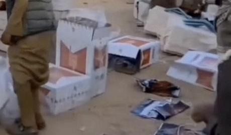 ফুটেজে লোকজনকে আরবি লেখা সহ বড় সাদা ব্যাগ বহন করতে দেখা যায়।