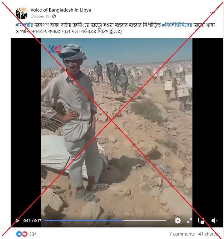 তবে ফিলিস্তিনিদেরকে সাহায্য সরবরাহের জন্য মিশরীয়রা ফিলিস্তিনে ঢুকছেন দাবিতে সামাজিক মাধ্যমে পোস্ট করা ভিডিওটি অসত্য।