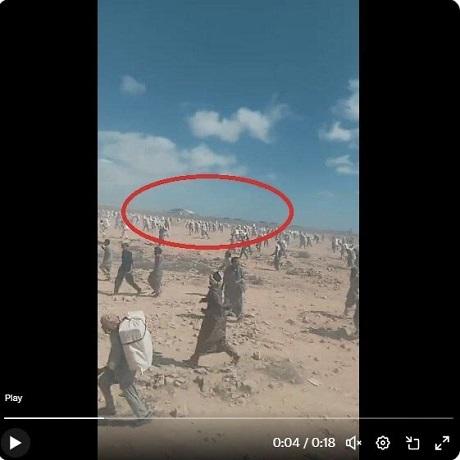 ৭,৪০০ বারের বেশি ভিউ হওয়া ১৭ সেকেন্ডের ভিডিওটিতে শত শত লোককে একটি মরুভূমি জুড়ো পিঠে 'মেকশিফট ব্যাকপ্যাক' মতো ব্যাগ বহন করতে দেখা যায়।
