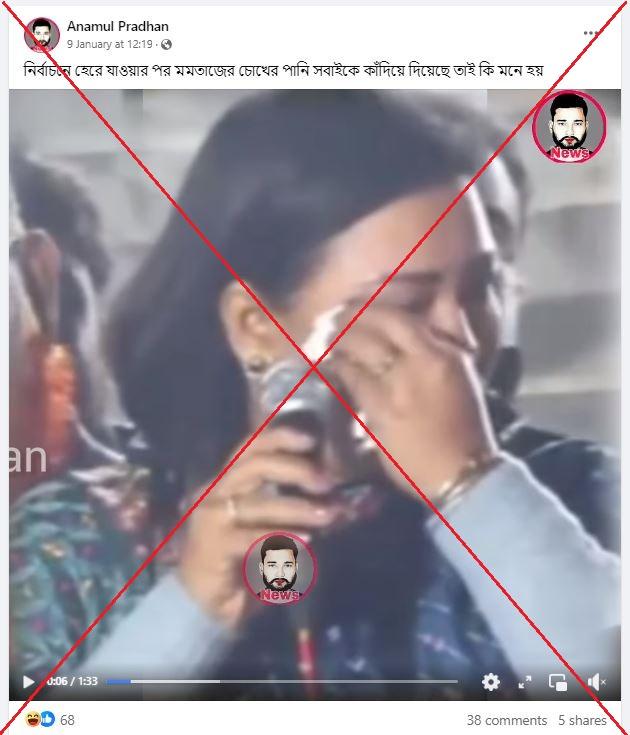 পোস্টের ক্যাপশনে বলা হয়: "ভোট চাইতে গিয়ে কাঁদলেন মমতাজ বেগম।"