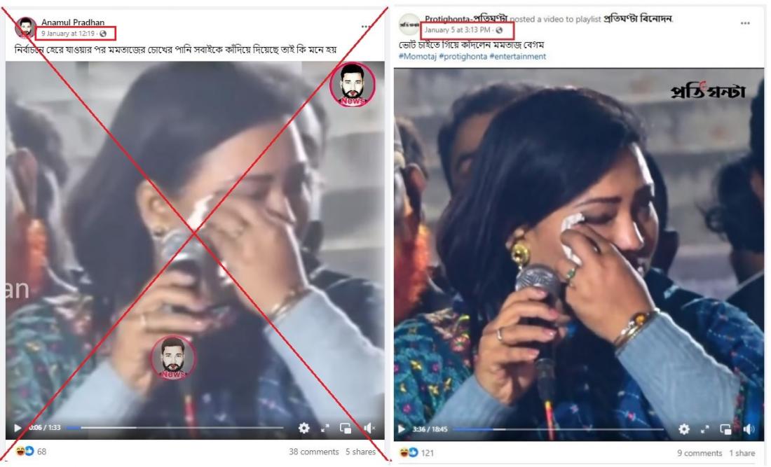 সদ্য অনুষ্ঠিত বাংলাদেশের দ্বাদশ সংসদীয় নির্বাচনকে ঘিরে অসংখ্য বিভ্রান্তিকর তথ্য সামাজিক মাধ্যমে ছড়িয়েছে। বিরোধী রাজনৈতিক দলগুলো নির্বাচনকে 'প্রহসন" সাব্যস্ত করে বয়কট করার পর এতে শেখ হাসিনা নিরঙ্কুশ জয় লাভ করেন। নির্বাচনী ফলাফল ঘোষণা শুরু হওয়ার পর থেকে কয়েক ডজন ফেসবুক পোস্টে একটি ভিডিও শেয়ার করে দাবি করা হয় যে, জনপ্রিয় লোকশিল্পী ও রাজনীতিবিদ মমতাজ বেগম ভোটে হেরে গিয়ে কেঁদেছেন। তবে বিভ্রান্তিকর পোস্টে কয়েক হাজারবার দেখা ভিডিওটি আসলে ভোটের দুই দিন আগের একটি প্রচার সমাবেশে ধারণ করা, নির্বাচনের ফল ঘোষণার পরের নয়।