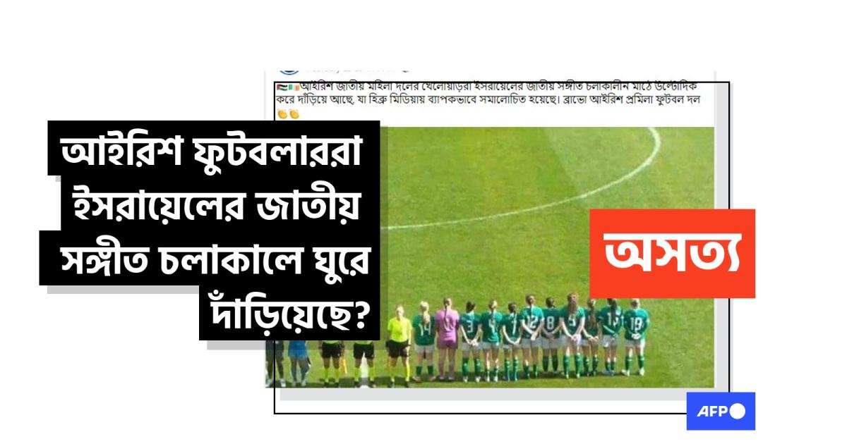 তবে সামাজিক মাধ্যমে ছড়ানো ছবিটি আইরিশ মহিলা ফুটবল দল কর্তৃক ইসরায়েলের জাতীয় সংঙ্গীত অবজ্ঞা করার নয়।