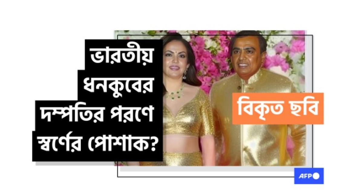 মুকেশ আম্বানি দম্পতির ছবি বিকৃত করে 'স্বর্ণের পোশাক' পরিহিত দাবিতে প্রচার