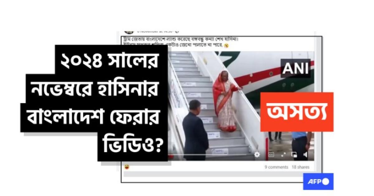 ৬ নভেম্বর ২০২৪ শেয়ার করা একটি ফেসবুক ভিডিওর ক্যাপশনে বলা হয়, "ট্রাম্প জেতায় বাংলাদেশে ল্যান্ড করেছে বঙ্গবন্ধু কন্যা শেখ হাসিনা।"