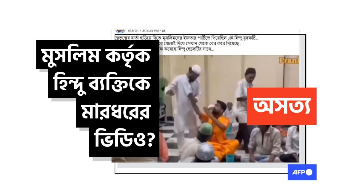 সাজানো ভিডিওকে সাম্প্রদায়িক বাস্তব ঘটনা হিসেবে বিভ্রান্তিকর ভাবে ছড়ানো পোস্ট খণ্ডন করে এএফপি আগেও এখানে ও এখানে প্রতিবেদন করেছে।