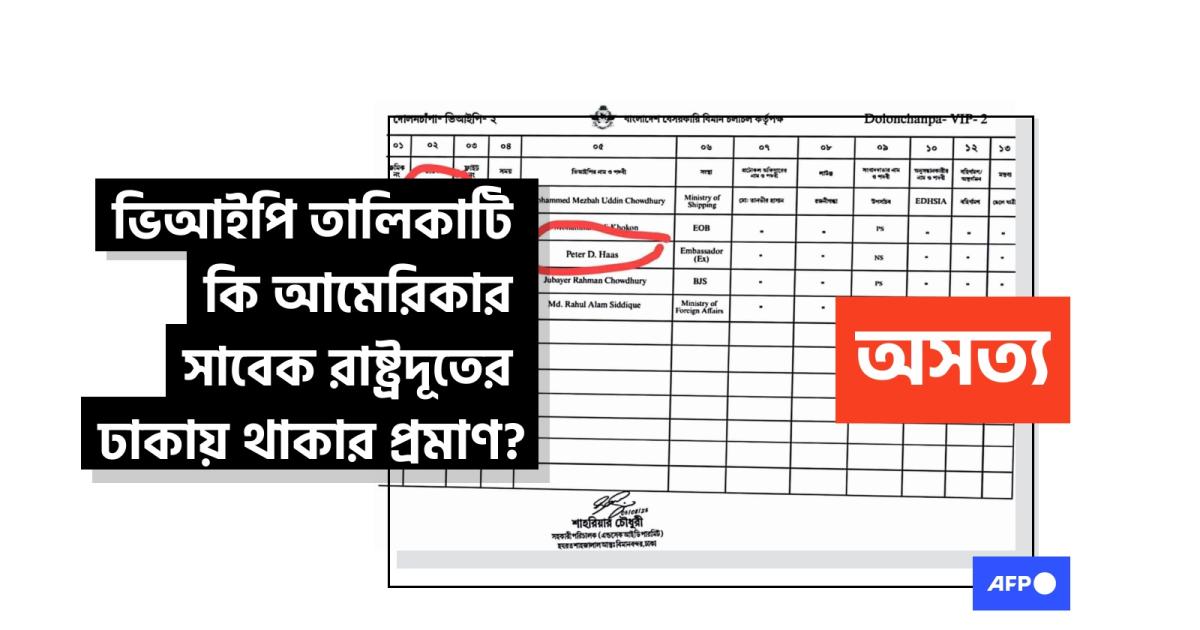 কথিত তালিকাটিতে ৫ আগস্ট, মার্কিন সাবেক কূটনীতিক পিটার হাসের নাম এবং তিনি ব্যবহার করেছেন বলে একটি ফ্লাইটের নাম উল্লেখ করে হাইলাইট করে দেয়া হয়েছে।