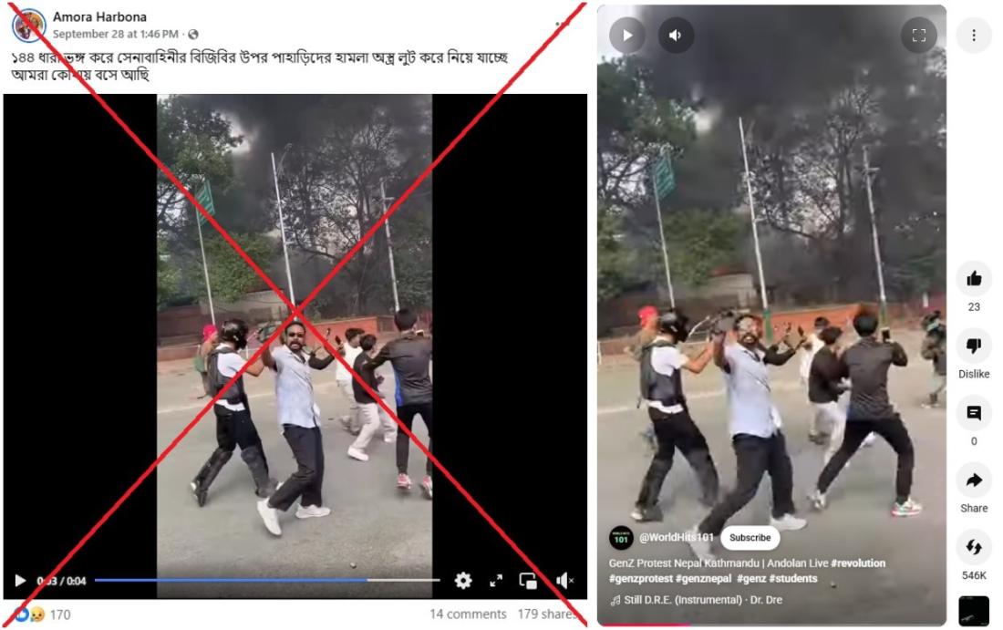 নেপাল ও ইন্দোনেশিয়ার বিক্ষোভের ভিডিওকে খাগড়াছড়ির দৃশ্য হিসেবে বিভ্রান্তিকরভাবে প্রচার