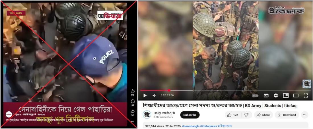 পুরনো ভিডিওকে খাগড়াছড়ির সহিংস বিক্ষোভের সাথে অসত্যভাবে সম্পৃক্ত করে প্রচার