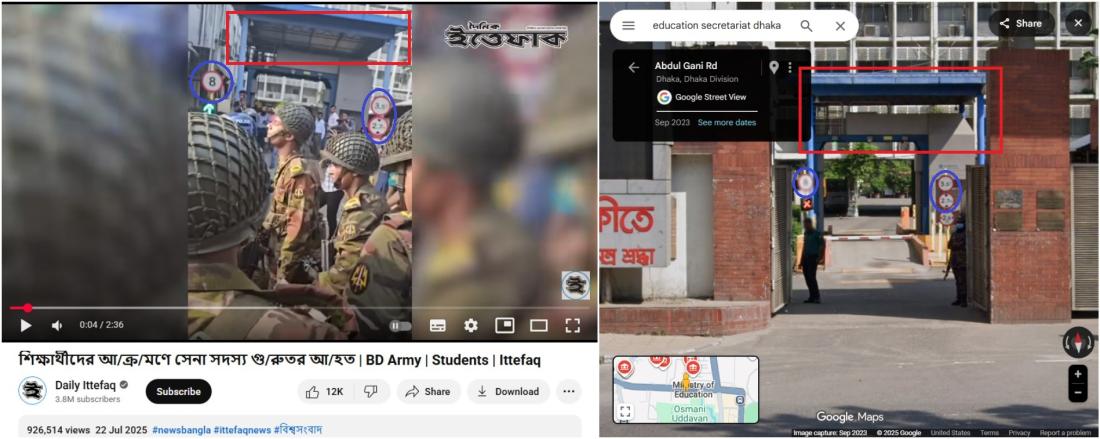 এছাড়া, সচিবালয় ভবনের গুগল ম্যাপস স্ট্রিট ভিউ ছবির সাথে ভিডিওটির মিল পাওয়া যায়(আর্কাইভ লিংক)।