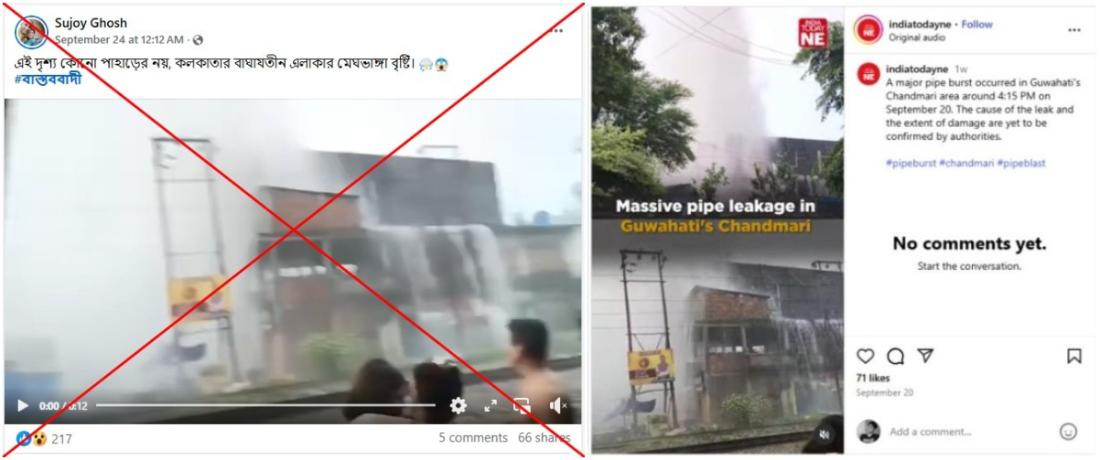 পাইপ ফেটে পানি বের হওয়ার ফুটেজকে কলকাতায় ভারী বৃষ্টিপাত হিসেবে বিভ্রান্তিকরভাবে প্রচার