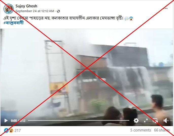 ২৪ সেপ্টেম্বর ২০২৫ তারিখে ফেসবুকে ছড়ানো একটি পোস্টের ক্যাপশনে বলা হয়, “এই দৃশ্য কোনো পাহাড়ের নয়, কলকাতার বাঘাযতীন এলাকার মেঘভাঙ্গা বৃষ্টি।”
