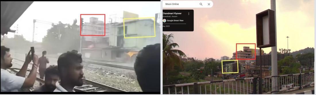 গুয়াহাটির গুগল স্ট্রিট ভিউর ছবির সাথে অসত্য পোস্টে দৃশ্যমান এলাকার মিল দেখা যায় (আর্কাইভ লিংক)।