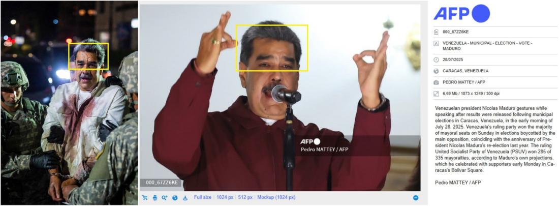 মাদুরোকে ধরে নেয়ার পর, এএফপি এই ঘটনা সম্পর্কে বেশ কিছু বিভ্রান্তিকর দাবি খণ্ডন করেছে। এসব বিভ্রান্তিকর দাবির মধ্যে রয়েছে ডেল্টা ফোর্সের অভিযানের নামে পুরোনো ভিডিও থেকে শুরু করে তাঁর ক্ষমতাচ্যুতি উদযাপন দেখানোর জন্য এআই-দিয়ে তৈরি ফুটেজের ব্যবহার।