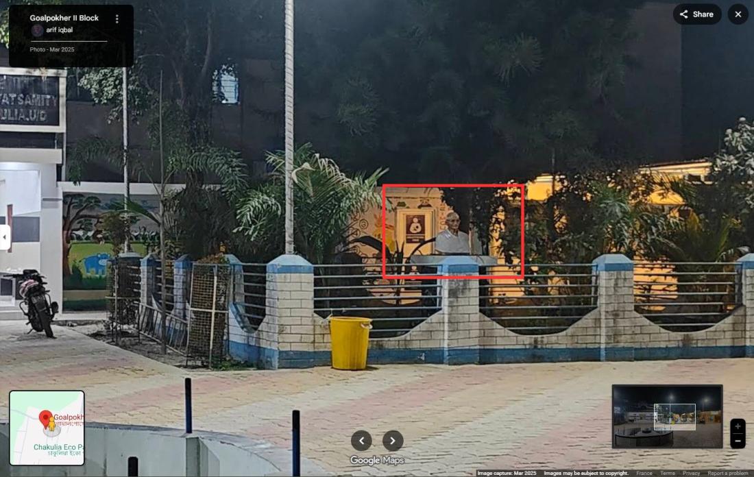 ২০২৩ সালে গুগল ম্যাপে ধারণ করা চাকুলিয়া অফিসে ভাস্কর্যটির একটি ছবি খুঁজে পেয়েছে এএফপি। অসত্য পোস্টের চারপাশের সাথে ছবিটির মিল রয়েছে(আর্কাইভ লিংক)।
