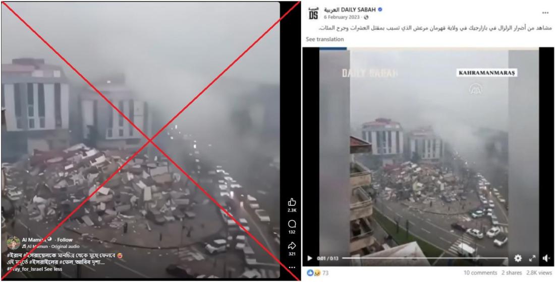 তুরস্কে ভূমিকম্পের ক্ষয়ক্ষতির ভিডিওকে ইসরায়েলে যুদ্ধের প্রভাব হিসেবে অসত্যভাবে প্রচার