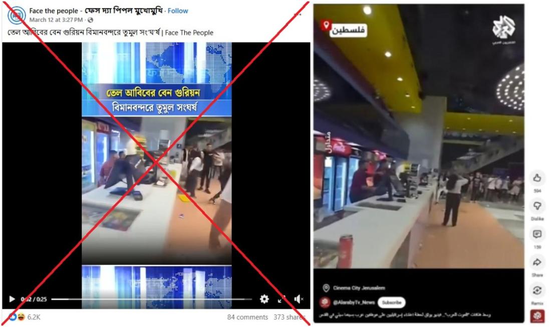 সিনেমা হলে হাতাহাতির পুরনো ফুটেজকে তেল আবিব বিমানবন্দরে হট্টগোলের বিভ্রান্তিকর দাবিতে প্রচার
