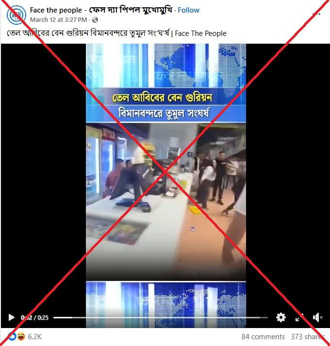 ফেসবুকে ১২ মার্চ ২০২৬ তারিখে ছড়ানো একটি পোস্টের ক্যাপশনে বলা হয়, “তেল আবিবের বেন গুরিয়ন বিমানবন্দরে তুমুল সংঘর্ষ।”