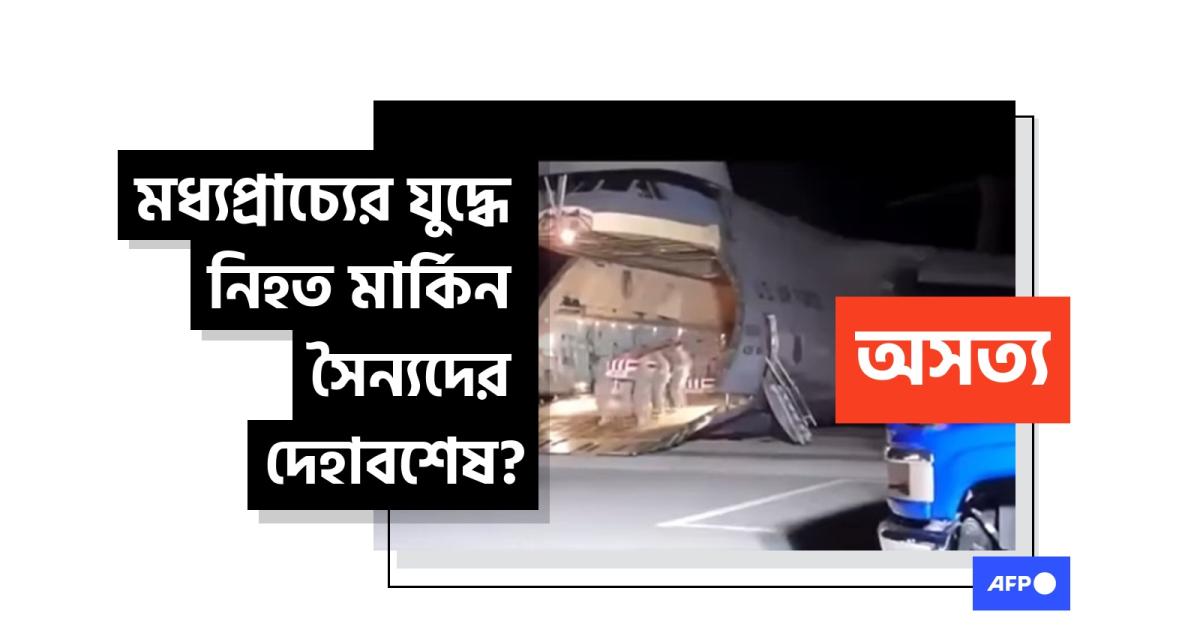 তবে মার্কিন সৈন্যদের দেহাবশেষের দাবিতে ছড়ানো ভিডিওর সঙ্গে মধ্যপ্রাচ্যে চলমান যুদ্ধের কোনও সম্পর্ক নেই।
