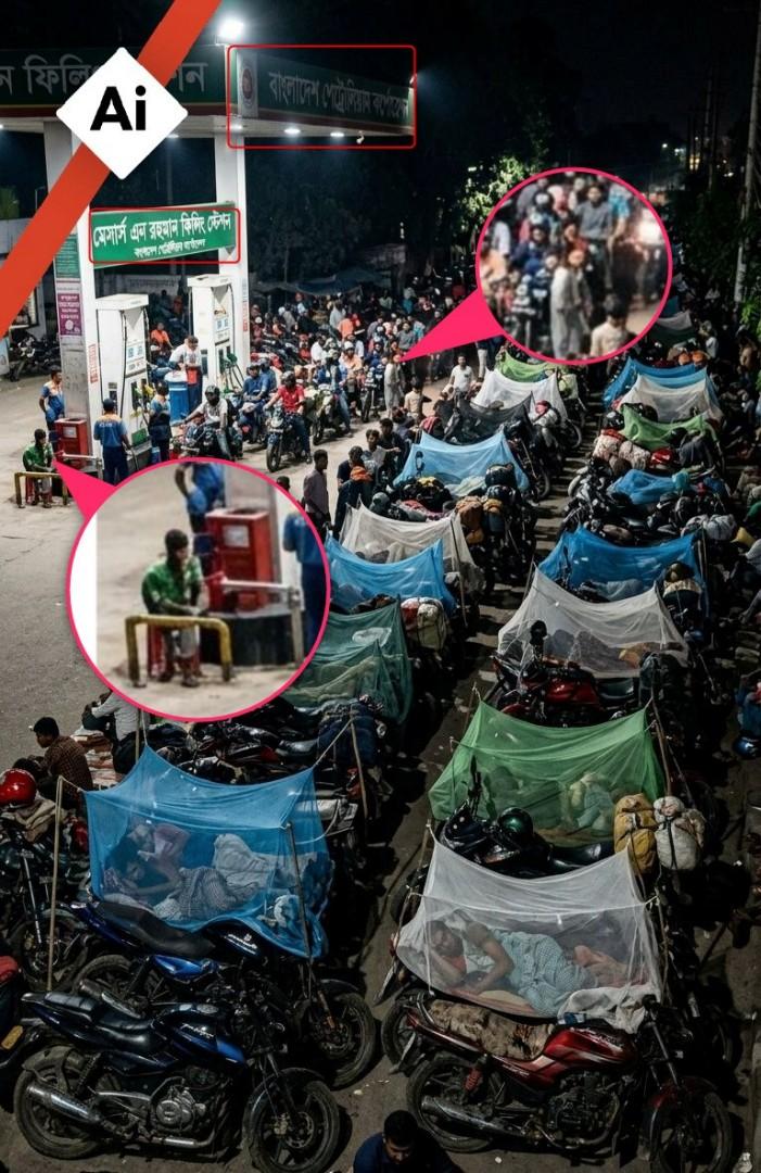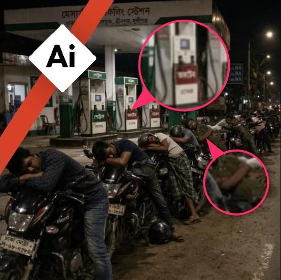 পেট্রল পাম্পে ঘুমন্ত বাংলাদেশি মোটরসাইকেল আরোহীদের ছবিগুলো এআই দিয়ে তৈরি
