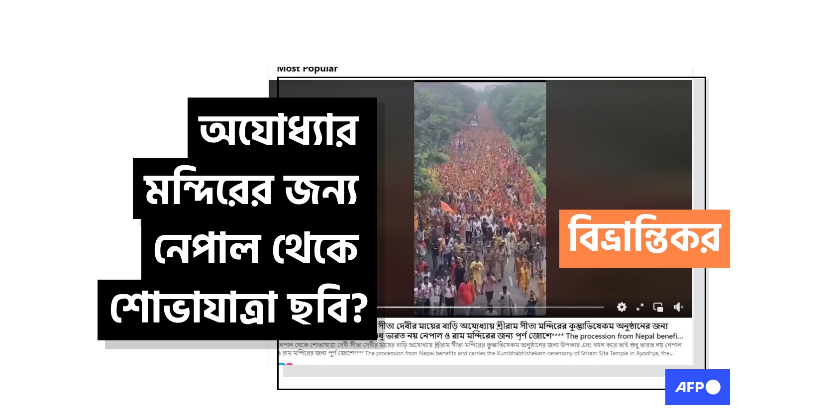 ধর্মীয় শোভাযাত্রার পুরনো ভিডিওকে অযোধ্যার বিতর্কিত মন্দিরের উদ্দেশ্যে নেপালীদের তীর্থযাত্রা বলে প্রচার প্রকাশিত 18 জানুয়ারি 2026, 09:37